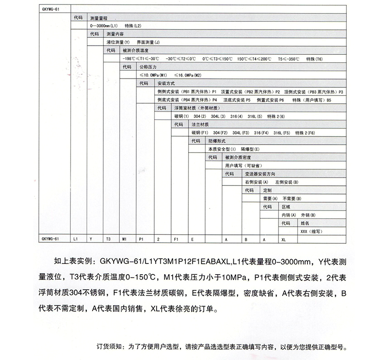 GKYWG-61電動(dòng)浮筒液位計(jì)是采用了國(guó)外技術(shù)及零部件研制組裝的新型液位測(cè)量?jī)x表,該儀表搭載了先進(jìn)微型計(jì)算機(jī)系統(tǒng),除了具有高準(zhǔn)確度、低漂移等優(yōu)點(diǎn)外,還可對(duì)測(cè)量過(guò)程的溫度和密度進(jìn)行自動(dòng)補(bǔ)償,同時(shí)可調(diào)整量程范圍,適合多種工況的液位界位測(cè)量。本產(chǎn)品具有防爆性,結(jié)構(gòu)簡(jiǎn)單,性能穩(wěn)定,安裝方便??蓮V泛用于石油、化工、冶金、電力及鋼鐵行業(yè)。GKYWG-61型電動(dòng)浮筒液位計(jì)可用來(lái)測(cè)量液位、界位和密度,不但能輸出4~20mA的標(biāo)準(zhǔn)電流信號(hào),也能利用HART通訊協(xié)議隨時(shí)讀取,對(duì)過(guò)程操作當(dāng)中用戶所需要的信息又可在傳輸線的任意一點(diǎn)對(duì)其進(jìn)行調(diào)校。